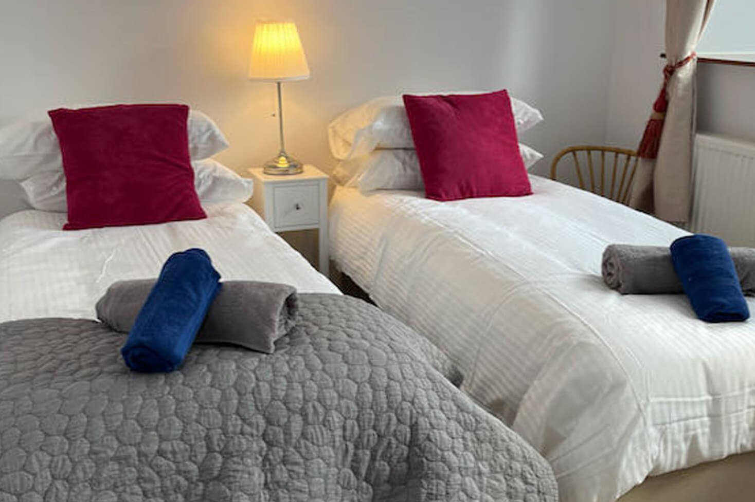 - 5 bedrooms (1 twin ensuite room, 2 double rooms, 1 single room, 1 twin pull out room /snug)
