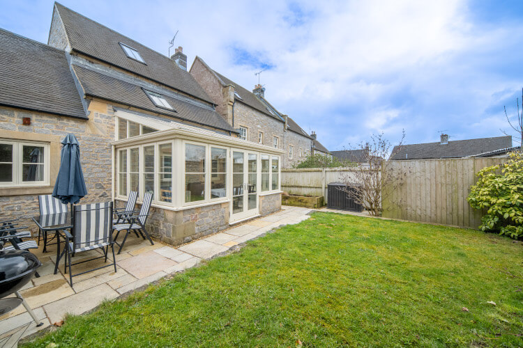 Outside, there is a secure lawned garden area with patio, with garden furniture for dining al fresco.